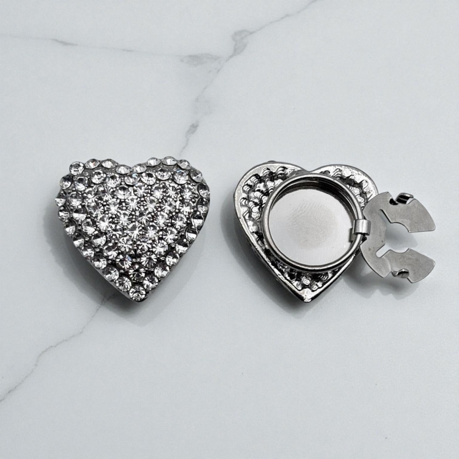 Cœur Givré est un bijou de bouton pensé pour celles et ceux qui veulent injecter une dose de lumière froide et sophistiquée dans leurs tenues. Entièrement serti de strass translucides à l’éclat glacé, il joue avec la lumière comme un cristal gelé.