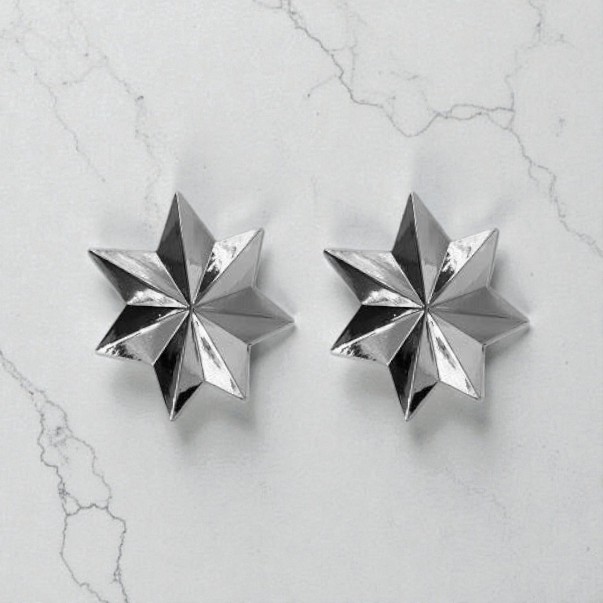 Le bijou de bouton Étoile à Facettes Silver capte la lumière avec précision grâce à sa forme sculptée en relief. Son fini métallique argenté apporte une touche moderne et impactante à une chemise, une blouse ou une veste.