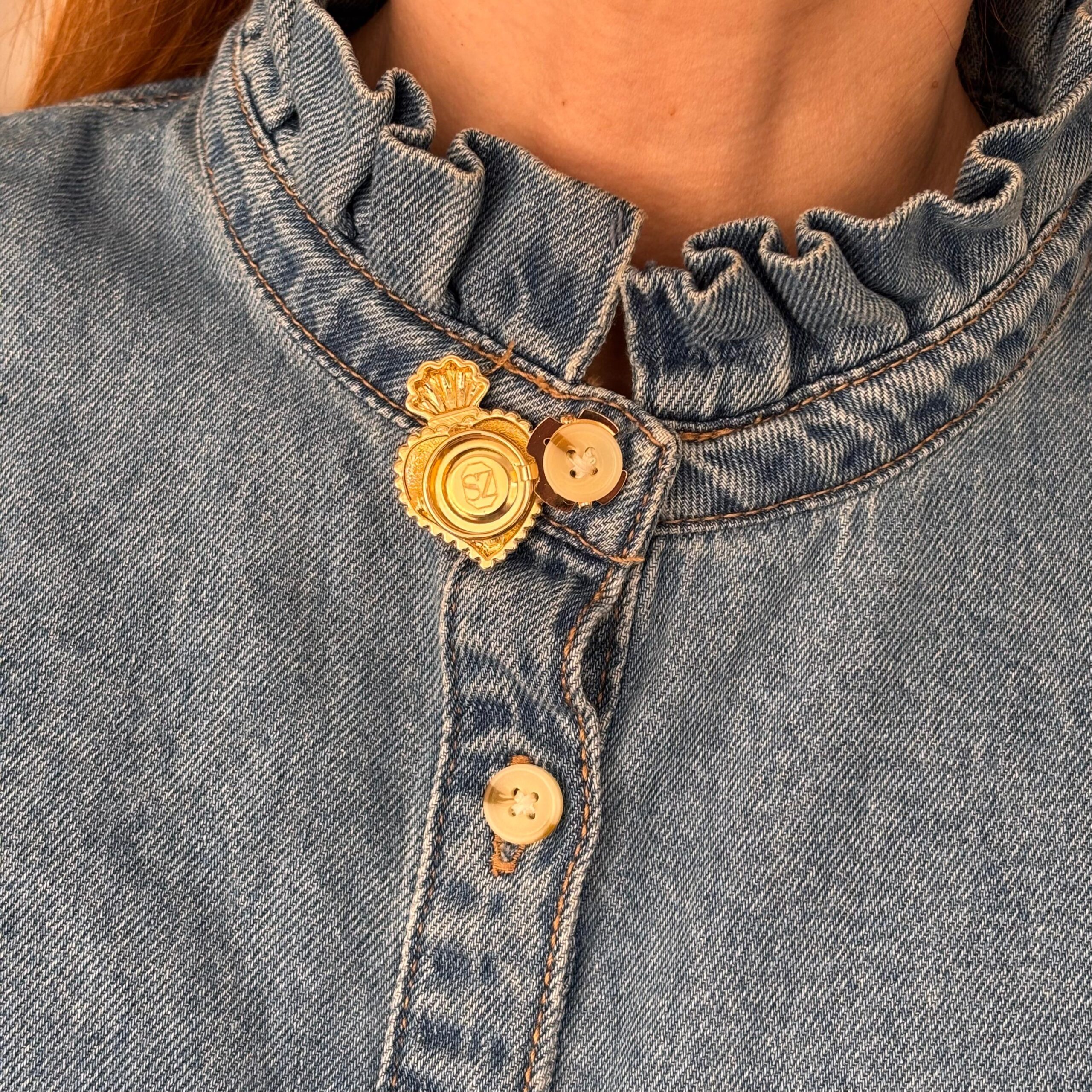 Le bijou de bouton Ex-Voto Corail Pep’s apporte une touche vive et contemporaine à une chemise ou une blouse, sans jamais basculer dans l’excès.